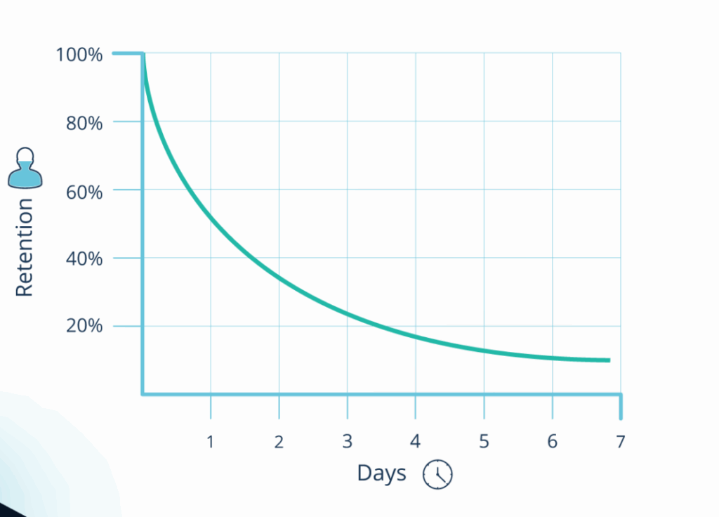 We forget 50% of everything we learn in one hour? No wonder I need a to-do list on my phone! Information naturally fades from our memory unless it’s actively reviewed.